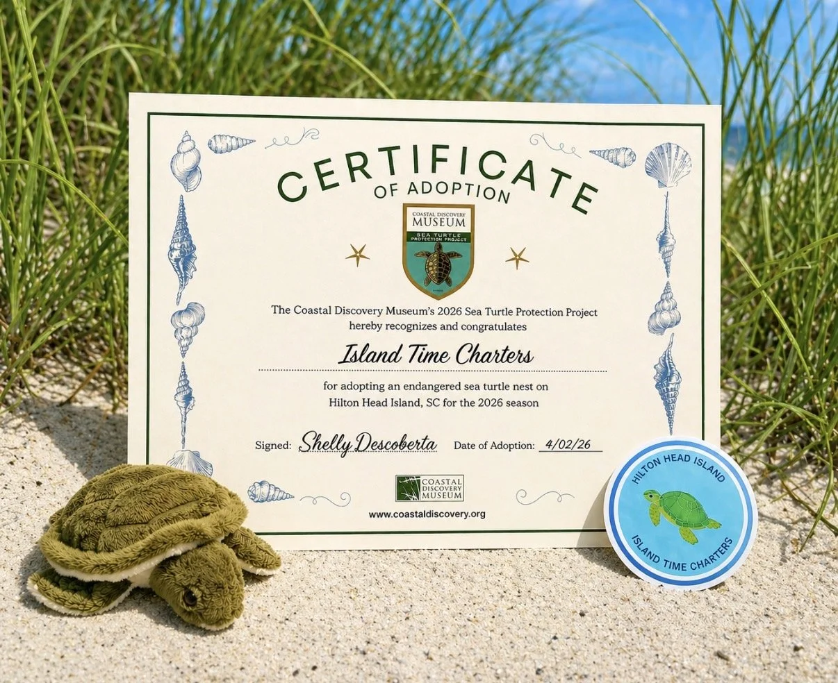 Island Time Charters has officially adopted their very own Sea Turtle nest through the Coastal Discovery Museum. This is something we’re incredibly proud to be part of and we can’t wait to bring you along for the journey.